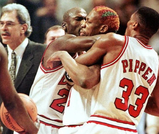 盡管羅德曼隨公牛拿過 3 次總冠軍,可他的 “臟動作” 始終是爭議焦點 —— 有人說他是 “鐵血防守的代表”,有人說他是 “賽場秩序的破壞者”。對攝影師、裁判和對手而言,“跟羅德曼同場,隨時可能成為他‘發泄’的目標”,畢竟 “他的瘋癲,連波波維奇都管不住”。