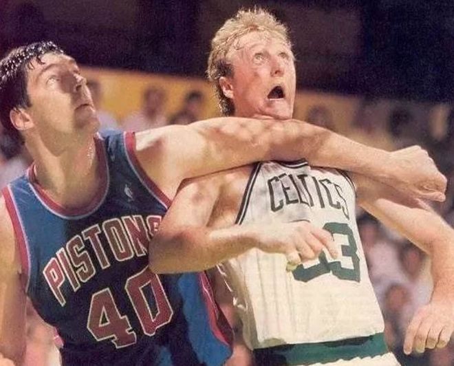 若說NBA“臟球員的天花板”,比爾?蘭比爾絕對是毫無爭議的第一。這位活塞 “壞小子軍團” 的領袖,防守時鎖喉、抱摔、肘擊無所不用,對手進他的禁區,就像 “走進死神的地盤”,連魔術師約翰遜都直言 “看見他在籃下,我寧愿放棄上籃,不想毀了職業生涯”。