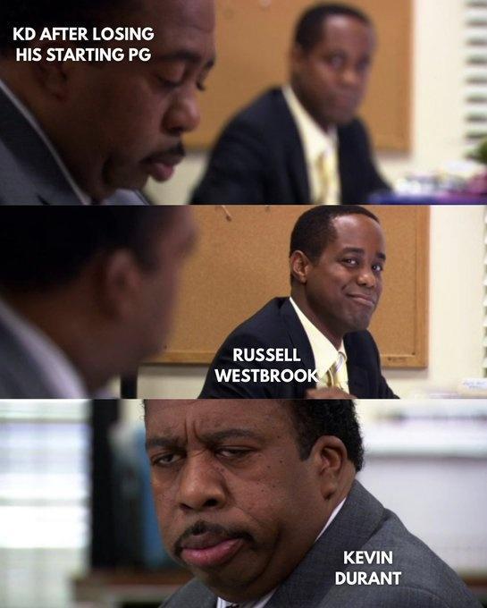 美媒惡搞:首發(fā)控衛(wèi)受傷后杜蘭特神情低落,威少向他拋媚眼......