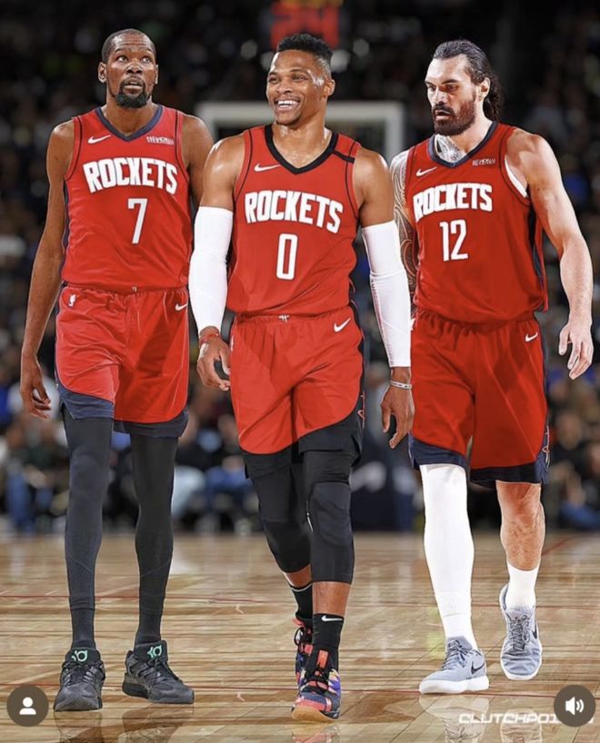 用大個陣容客串,卻不愿意給威少一個機會,你說火箭這是怎么想的?理由很簡單,首先他們不需要沒有投籃的后衛(wèi),因為火箭的首發(fā)投籃已經(jīng)一般了,阿門湯普森和申京的投射能力都不出色,不想用威少過來堵住空間,還有就是怕威少來了杜蘭特會不樂意。