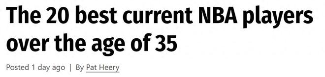 詹庫杜前3!美媒公布現(xiàn)役35歲以上球星TOP20:哈登壓巴特勒排第4