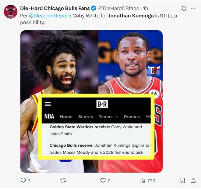 美媒《露天看臺(tái)》為勇士隊(duì)有找到了一套新的交易方案,用庫(kù)明加、穆迪、2028年首輪簽從芝加哥公牛換科比-懷特、杰倫-史密斯。庫(kù)明加需要先簽后換,他們認(rèn)為這筆交易可以滿足兩隊(duì)的需求打破僵局。