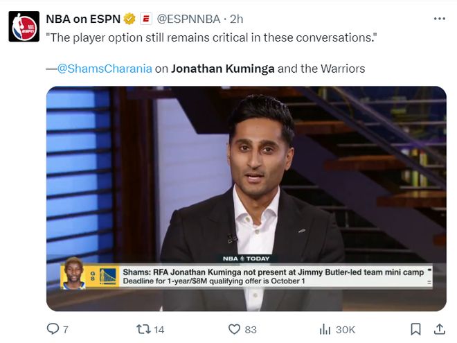 Amick:勇士國(guó)王重啟關(guān)于庫(kù)明加的交易談判 此前已冷卻一個(gè)多月