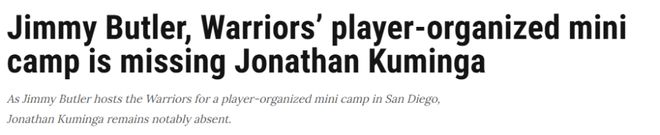 巴特勒組織迷你訓練營:庫明加成勇士唯一缺席者 經紀人強調訴求