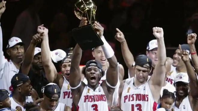 縱觀整個NBA歷史,每一年的總冠軍隊伍中,都有一位實力相當出眾的巨星坐鎮。當然也有個例,比如2004年的那支平民活塞隊就沒有像科比那種級別的超巨,最后也能登頂奪冠,但這僅僅是個例。所謂個例,那就是在大樣本之下發生的概率比較低,大部分都得有頂級超巨帶領,最終才能取得成功。
