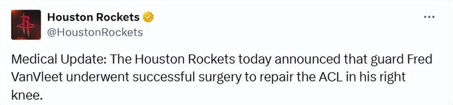 范弗利特已完成韌帶手術!謝潑德阿門或搭檔首發 火箭最快1月補強