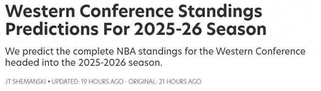 火箭隊(duì)第4名!美媒預(yù)測(cè)新賽季西部排名:勇士隊(duì)屈居第9湖人隊(duì)第三