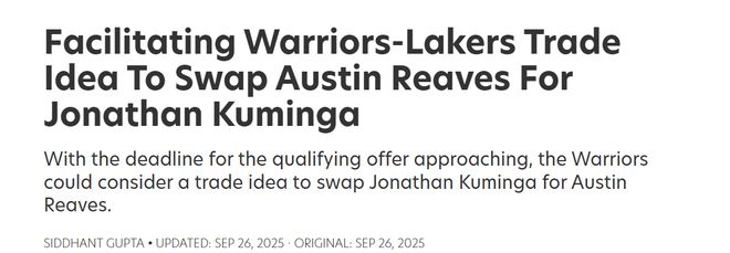 美媒提議湖人勇士極限1換1交易,庫明加、里夫斯接班詹姆斯、庫里