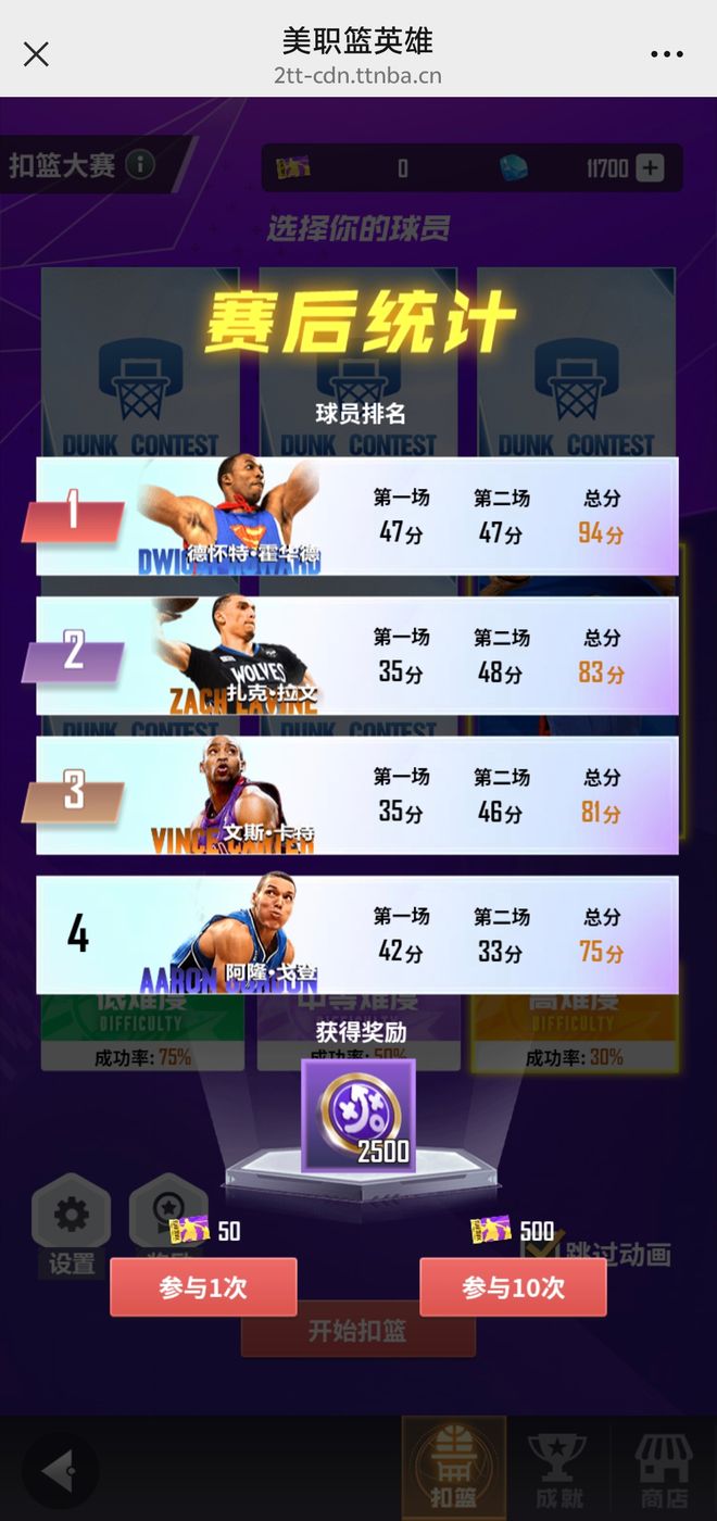掃碼進入游戲-活動-即可參與扣籃大賽贏巔峰教練