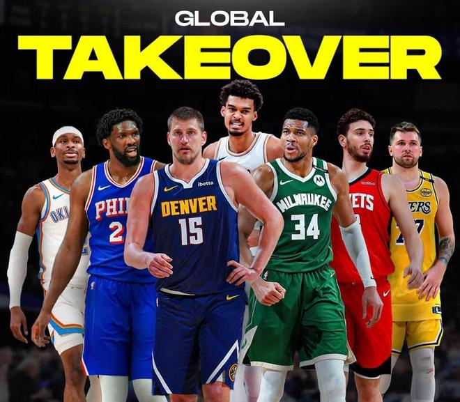 北京時間9月29日,知名美媒clutchpoints曬出一張海報,上面有7位國際球星(以出生地為準),包括亞歷山大、恩比德、約基奇、文班亞馬、字母哥、申京和東契奇。海報配文是“全球性接管”。