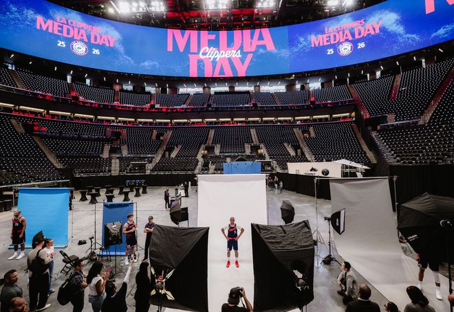 北京時間9月30日,洛杉磯快船隊進行了媒體日活動,前船長保羅拍攝定妝照時快船官方曬出了一張球館的全景圖,隨后哈登、倫納德、祖巴茨、比爾等人都進行了定妝照的拍攝。