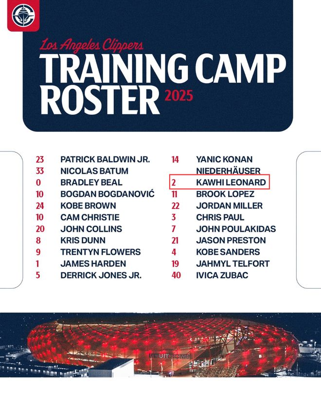 從快船官方給出的21人訓練營名單來看科懷-倫納德并沒有受到‘陰陽合同’的影響,他還是在大名單內,這21人分別是: