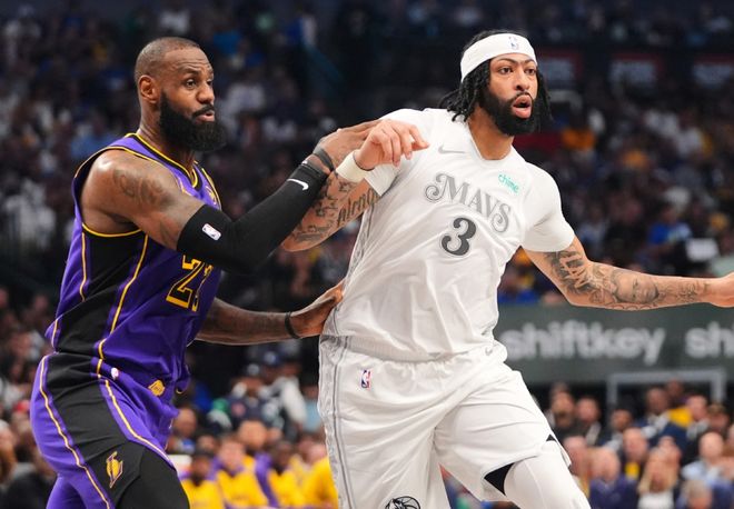 看起來是典型的既要未來(圍繞弗拉格+萊夫利),又要當下,但當下階段,最不確定的反而是濃眉!很多湖人球迷應該記得,在20年和21年湖人奪冠前后,濃眉打四號位,經常遭遇一些跟腱炎和腹股溝拉傷的病情,四號位需要有大范圍的移動和防守覆蓋能力,這些和在五號位遭遇的傷病隱患(肌腱炎或者足底筋膜炎)是兩碼事,前者不可控,后者可控。濃眉的技術優勢在五號位能最大化,但面對四號位或者錯位三號位,濃眉速度沒優勢,技術和靈活性也未必比得上對手,關鍵是球隊戰術發起,和弗拉格有沖突。