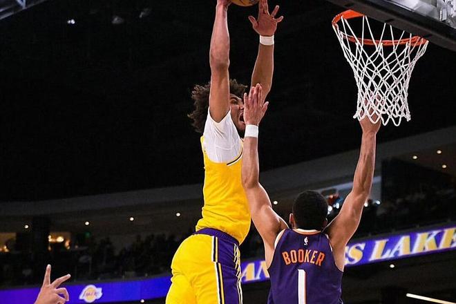 球迷們等啊等,一直沒有等到艾頓的運(yùn)動(dòng)戰(zhàn)進(jìn)球。反觀隊(duì)內(nèi)‘老將’海斯,這家伙起來就是一個(gè)隔扣,在空中將補(bǔ)防的布克強(qiáng)硬撞飛。新援艾頓指望不上,東契奇和詹姆斯缺席,所以湖人隊(duì)今天的進(jìn)攻,基本是全是靠里夫斯一人扛著。只是,雙拳難敵四手,里夫斯一人頂不住太陽隊(duì)的狂轟濫炸。這邊里夫斯或者其他人一旦打鐵,太陽那邊很快就能完成快攻。即便在首場季前賽,雷迪克對(duì)于球隊(duì)的防守感到不滿,直接發(fā)飆,也是不斷喊暫停,試圖喚醒球員手感。但仍然壓不住太陽火熱的進(jìn)攻手感,分差很快被拉到了兩位數(shù),三節(jié)更是輸了25分。