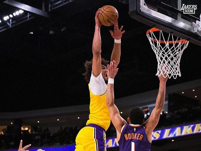末節決戰,太陽換上飲水機陣容后,進攻能力大幅削弱,而湖人這邊替補席的表現還不錯,RJ戴維斯上來就制霸籃下,連續得分,克內克特的高難度強行三分出手也穩穩命中,不過比賽結果還是懸念全無,太陽將20來分的領先優勢保持到了最后,最終,季前賽首戰太陽103-81大勝湖人22分。