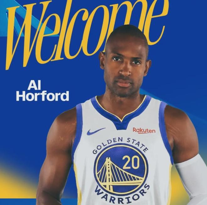 賽后,勇士官方社媒更新了霍福德的首秀帥照,并附文道:“新晉灣區巨人,20號霍福德。”