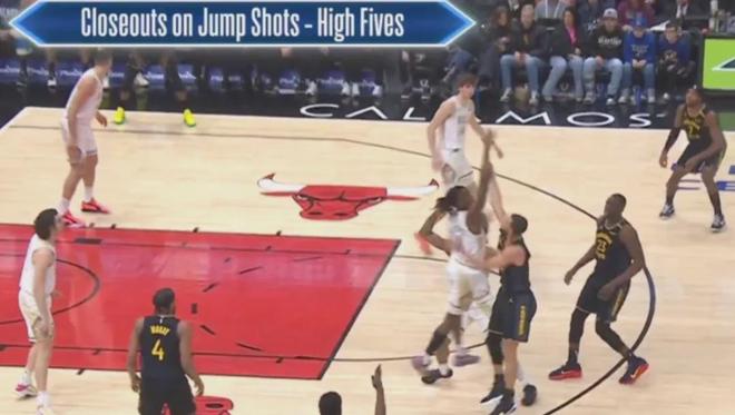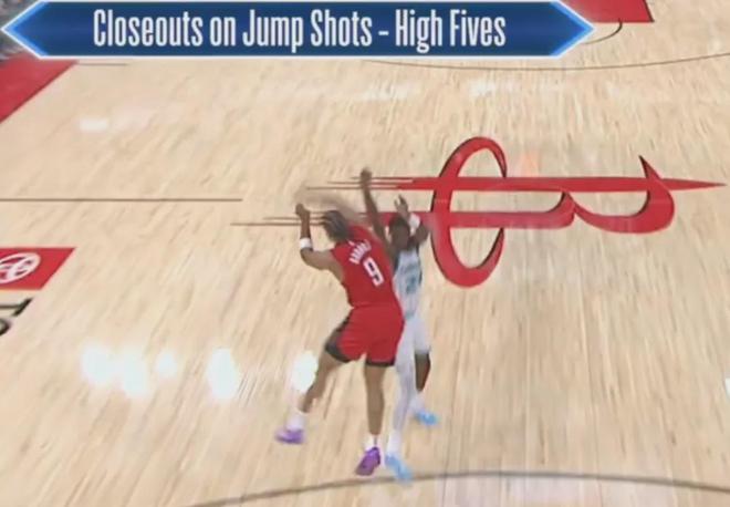其實一直以來,想要防住庫里的三分球遠投都不是一件容易的事情,緊跟庫里到最后完成投籃干擾,確實有很大概率會碰到庫里的手。